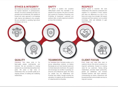 Is to undertake engineering and system integration business with a focus on delivering safe, sustainable, high-quality projects andservices which uphold our core values. This can be achieved through providing quality workmanship and customer service as well as maintain the highest levels of professionalism, honesty and fairness in our relationships with our associates.