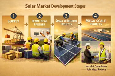Golden Stars for Solar Energy is a New, dedicated division focused on serving selected markets across the Middle East. Through strong partnerships with trusted local companies, we supply high-quality solar solutions while providing reliable remote technical support to ensure smooth project execution and long-term performance. This approach combines local presence with international expertise, enabling efficient coordination, responsive support, and dependable after-sales service tailored to the specific needs of each region.
